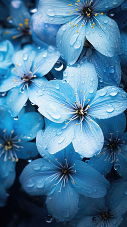 A stunning array of delicate blue flowers is beautifully scattered across a serene, light backdrop, creating a tranquil and inviting atmosphere. Each petal, with its subtle gradients of blue, evokes feelings of calmness and serenity, making this image perfect for themes of nature, beauty, and peace.
