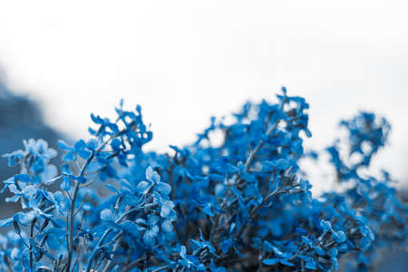 Close up blue lilac flowers background. Blooming Zeanotus lilac bush with tender flowers. Spring blossom time. Trendy Classic blue color. Wide banner.