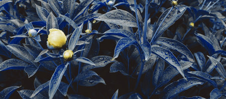 Mystical Blue Toned Foliage with Delicate Flowers in Dreamy Nature Background