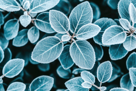 Frost-covered leaves in close-up: captivating art of nature's cold embrace.