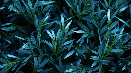 a blue-green plant with a dark color is depicted in this hyper-detailed and realistic rendering. the decorative background and free brushwork add depth to the imitated material. inspired by the style of leiji matsumoto, the allover composition showcases intertwining materials. ai generated