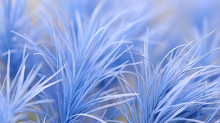 Elegant blue foliage showcases detailed vein patterns on slender stems, forming a refined and captivating natural pattern set against a soft, luminous background.