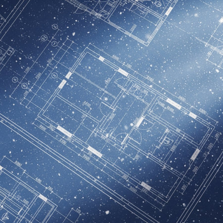 Blueprint-style background showing floor plans and measurements. Perfect for architecture presentations, engineering, and design sketches.