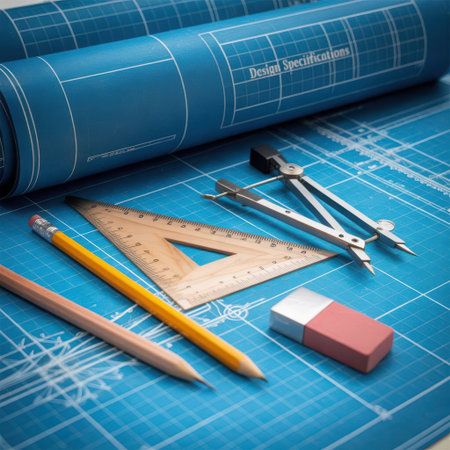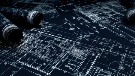 A captivating image of an architectural blueprint reveals intricate details with technical drawings and drafting tools, showcasing the precision needed for modern design projects.
