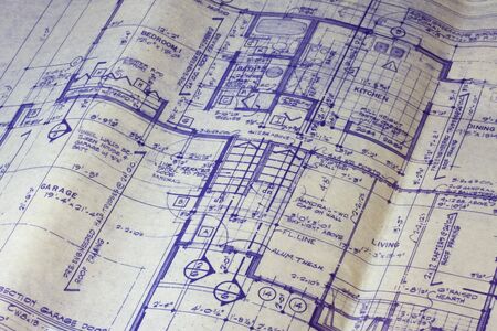 detail of 40 years old house blueprint - main floor plan