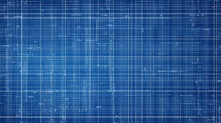 Digitally created abstract blueprint design in blue tones showcases intricate details and grids, symbolizing technology advancement and engineering creativity.