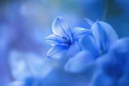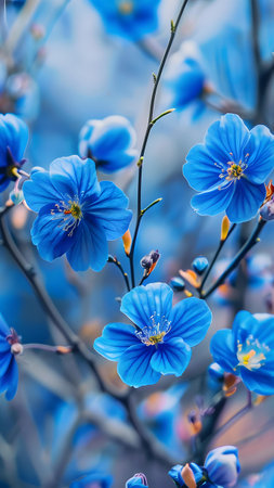 Soft blue flowers creating a serene and calming atmosphere, ideal for nature themed projects, wallpaper, and social media content