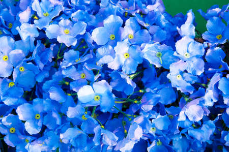 Small bouquet of delicate forget-me-nots on blue background. Studio Photo