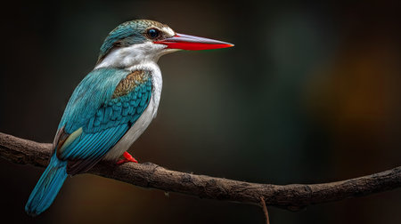Generative AI : A beautiful bird Oriental Dwarf Kingfisher Ceyx erithacus rest on branch in nature