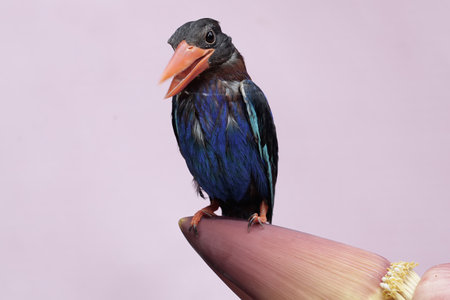 Black Kingfisher (Halcyon smyrnensis) on a flower