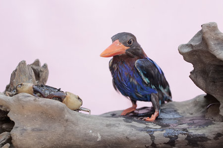 Colourful kingfisher bird on a branch in Kerala province, India