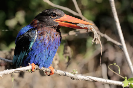 Colorful bird, Black-capped Kingfisher (Halcyon capensis) perching on a branch