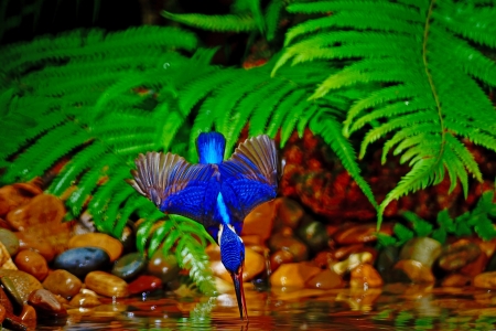 fly into the water, male Blued-eared Kingfisher (Alcedo meninting)