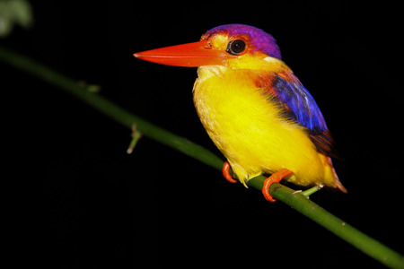 beautiful male Black-backed Kingfisher Ceyx erithacus sitting on branch at Kaeng Krachan National Park,Thailand