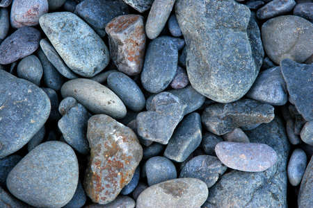 Gray pebbles as a background. Round stones on the beach. Photography for design. Textures in nature.