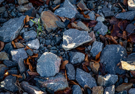 Background of many various sizes of gray and blue sedimentary Stone are used to level the floor on the ground