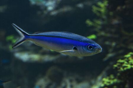 The dark-banded fusilier, blue-streak fusilier, bartail fusilier, neon fusilier, (Pterocaesio tile).