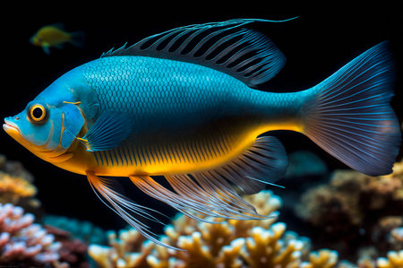 AI Generated. A Blue Fish Swimming Through Orange Coral
