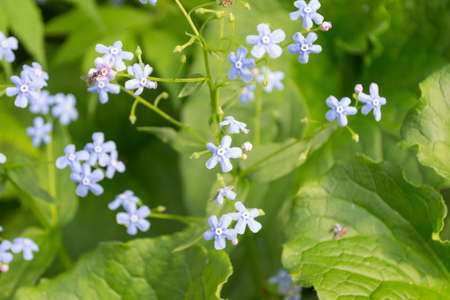 spring flowers of a forget-me-not with green leaves