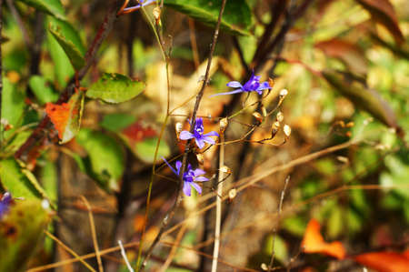 Beautiful color shot of blue small flower in grass. Close-up view in nature.