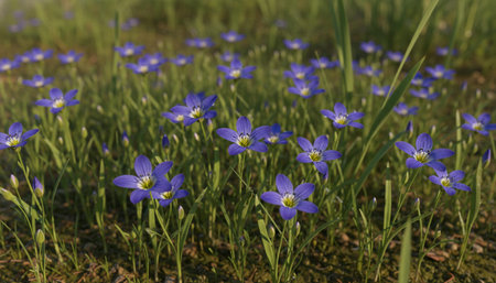 Bright blue spring phlox blooms gracefully in a meadow, showcasing its delicate petals. This selective focus captures the beauty of nature, inviting viewers to appreciate its vibrant charm. Selective focus.