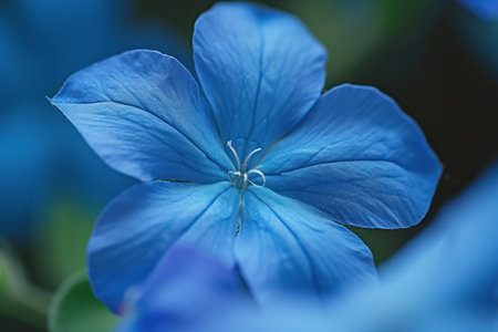 Macro photography captures the intricate details of a vibrant blue flower, showcasing its delicate petals and fine veins