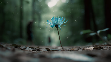 Blue flower in the forest with a blurred background and bokeh