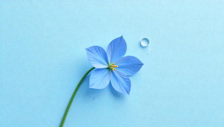 Elegant blue flower on a soft pastel background, symbolizing tranquility and beauty, ideal for nature and floral designs in various seasonal themes