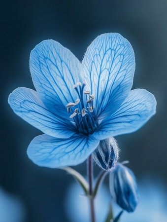 A stunning close-up of a delicate blue flower set against a softly blurred background, capturing the essence of tranquility and beauty in nature, ideal for artistic projects.