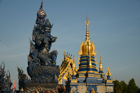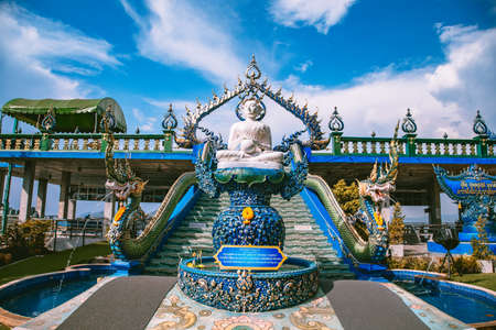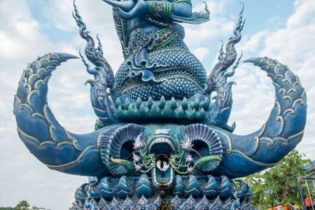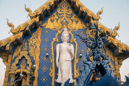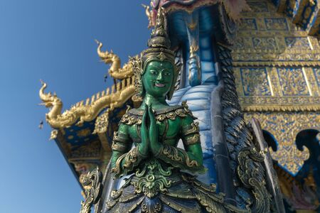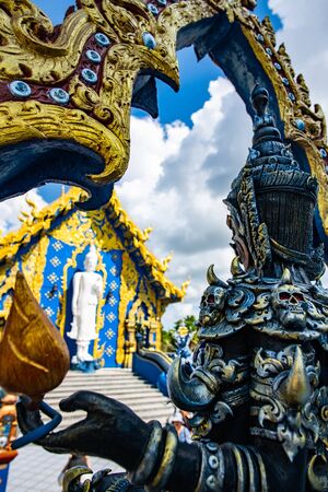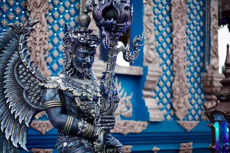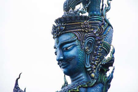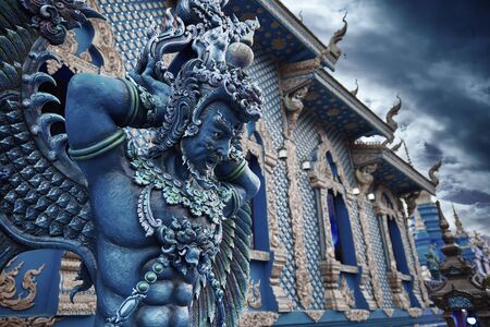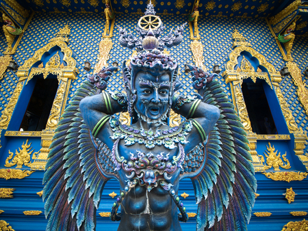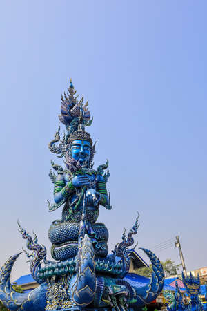 Closeup blue god statue of Wat Rong Sua Ten in Chiang Rai, Thailand. Here is one of the most famous Chiang Rai landmarks.
