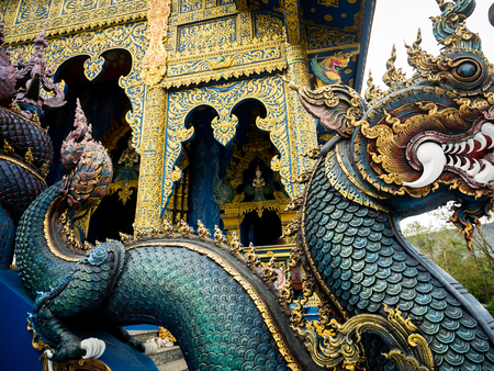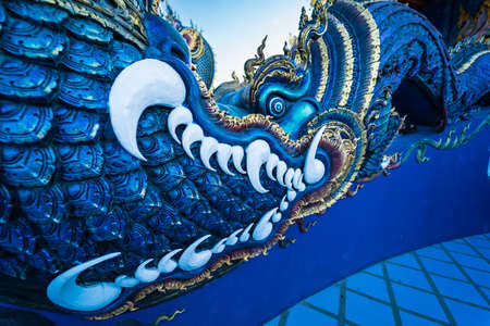 Naga:Stucco art at Wat Rong Sua Ten,Chiang Rai Province,Thailand.