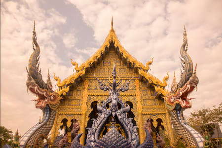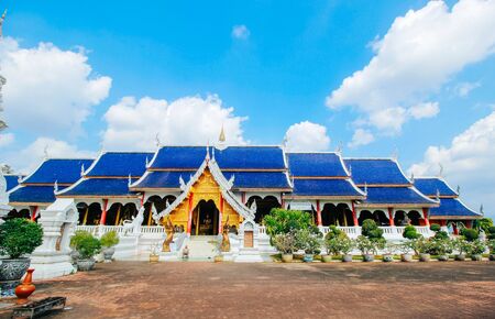 Chiang Rai, Thailand - January, 09, 2022 : Thai traditional church is the art of Wat Rong Suea Ten at Chiangrai Thailand.