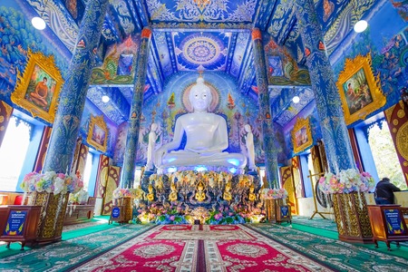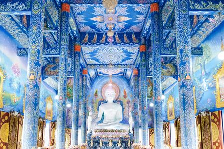CHIANG RAI, THAILAND - December 20, 2017: Very beautiful buddha image in the chapel of Wat Rong Sua Ten or Rong Sua Ten temple. This place is the popular attraction for Chiang Rai trip.