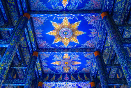 Rimkok district,Chiang Rai Province,Northern Thailand on January 19,2020:Beautiful paintings at the ceiling of the main hall of Wat Rong Suea Ten or Blue Temple.