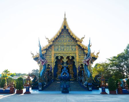 Wat Rong Seur Ten or Blue Temple is a famous temple and is a major tourist attraction of Chiang Rai Province, Thailand. Copy space background
