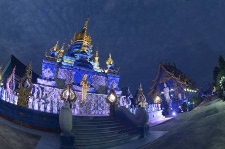 Wat Rong Seur Ten or Blue Temple is a famous temple and is a major tourist attraction of Chiang Rai Province, Thailand.