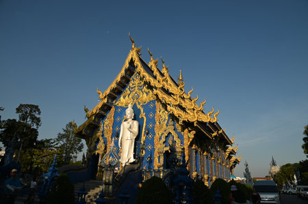 Chaing Rai, Thailand - March 6 ,2021 : Blue Temple or Wat Rong Sua Ten is one of the most famous attractions of Chiang Rai Province Northern Thailand.