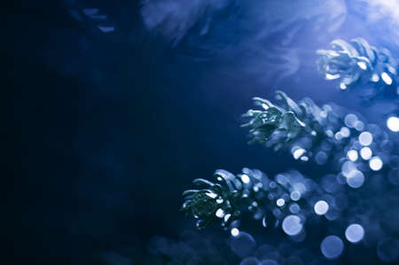 abstract Christmas blur lights with artificial pine branches