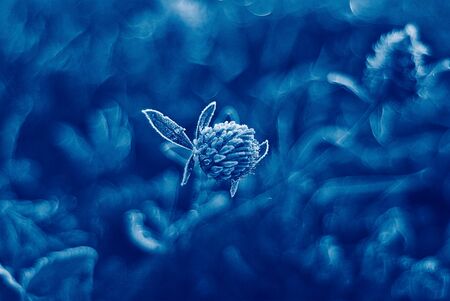 Flower of clover toned in classic blue color. Floral template. Nature and futuristic abstract backdrop