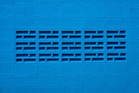 Painted blue brick wall and air ventilation brick