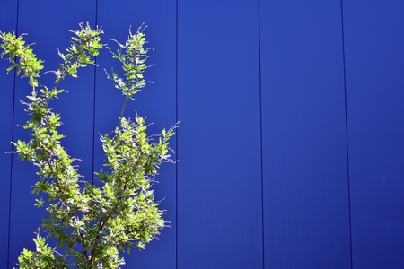 The dark blue concrete wall with the light