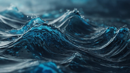 Dynamic blue waves ripple across a tranquil surface during daylight hours