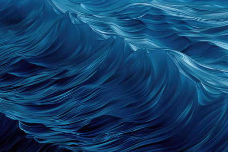 This artistic rendering displays an abstract landscape of undulating, wave-like forms, primarily in rich shades of blue. The scene is characterized by rhythmic peaks and valleys that create a strong sense of dynamic movement and flow. Fine, textured details enhance the depth and suggest a layered or granular construction, contributing to the visual interest of the blue gradient transitions. This versatile backdrop evokes deep ocean currents, topographical patterns, or advanced digital data visualizations. It provides a modern, serene, yet powerfully aesthetic foundation for many creative projects.
