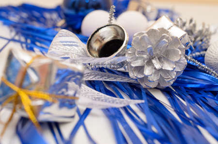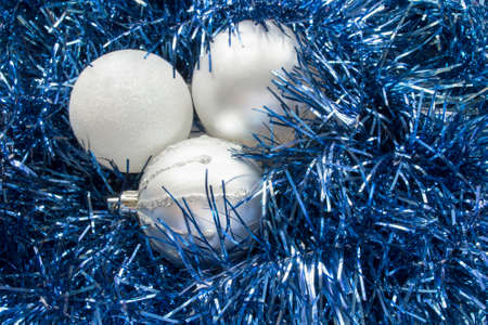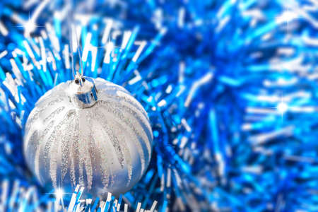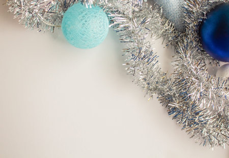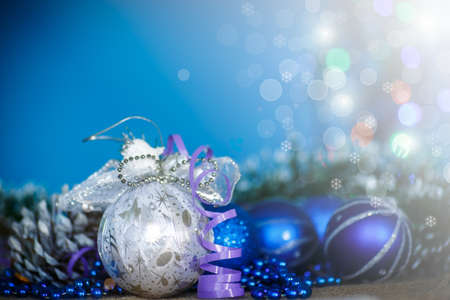 Theme of new year or merry christmas. Color ball and color tinsel for new year card. Tone correction