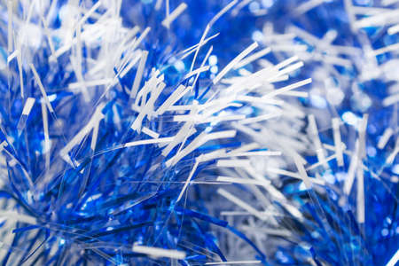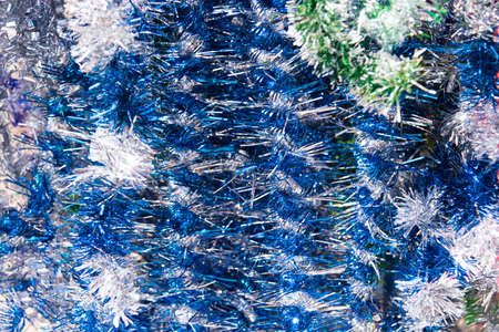 Natural background of Christmas tinsel with different blur the focus on the lens