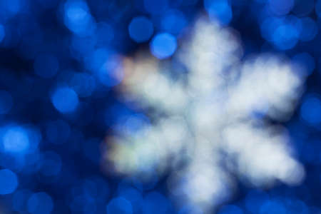Abstract blurred blue light bokeh at christmas tree in the night background