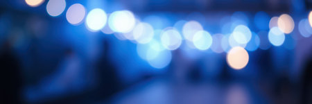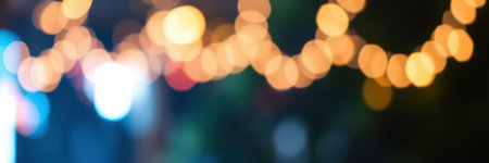 Blurred lights abstract background, banner texture. Holiday defocused bokeh header. Wide screen wallpaper. Panoramic web banner with copy space for design