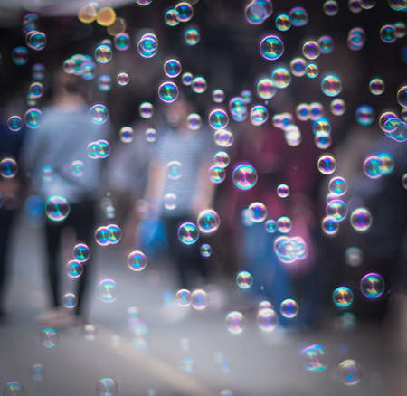 Prague, Czech Republic, September 29, 2017: Holiday soap bubbles in the street in Old Town Square in Prague, Czech Republic