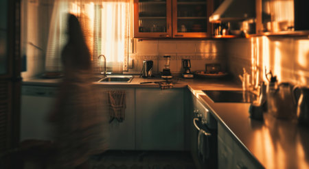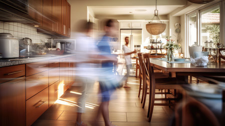cooking blurred home interior family illustration motion activity, appliances utensils, dynamic energy cooking blurred home interior family