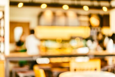 Abstract blur coffee shop, cafe or restaurant with abstract bokeh light image interior for background - Vintage Filter. For create montage product display